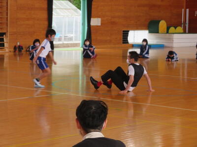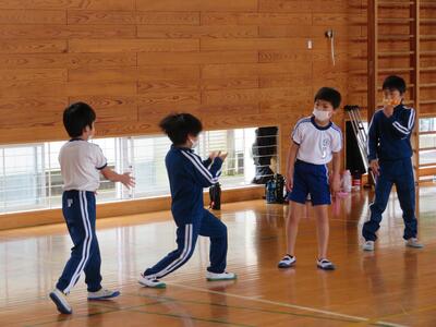 次はとなりの人に拍手のバトンパスをします。(協力しないと早くできません!)