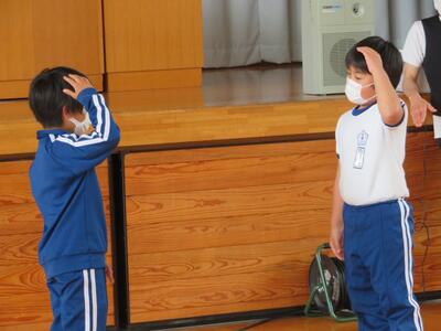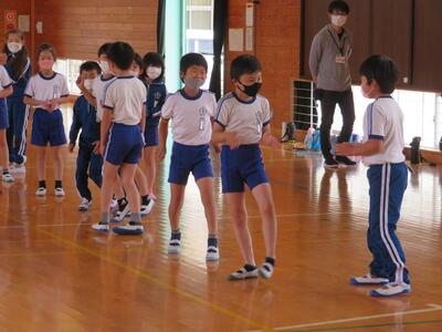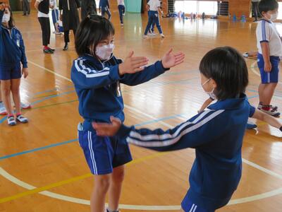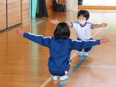 今度は相手と反対の動きを表現します。(相手をよく見ないと出来ません)