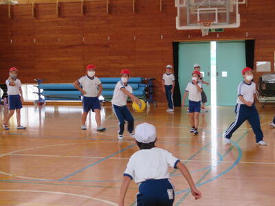 校庭が使えなかったので、体育館でドッジボール、バレーボールを楽しんでいました。