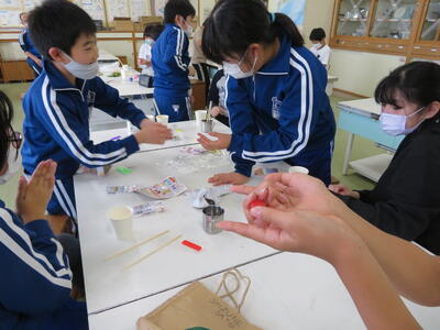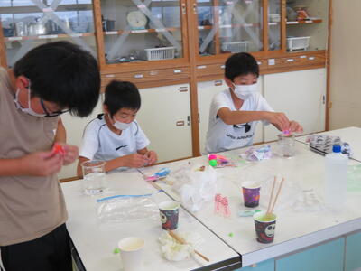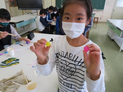 理科室できれいなカラースーパーボール作りに取り組んでいました。