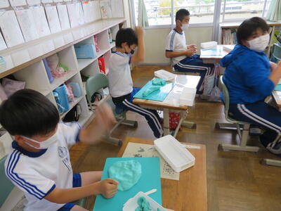 粘土で思い思いのものを作成していました。