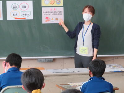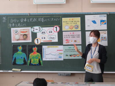 10月14日2校時目 栄養教諭 阿部先生をお迎えして、5年生を対象に「食に関する指導」が行われました。