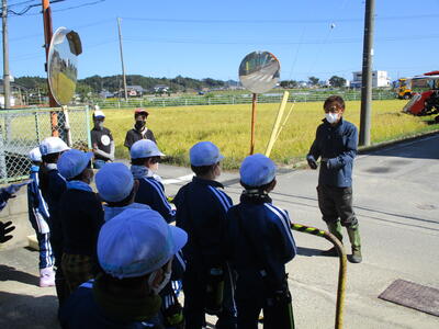交通指導員の方々の他にも、大浦地区見守り隊の方々も児童たちの安全を見守っていただいています。