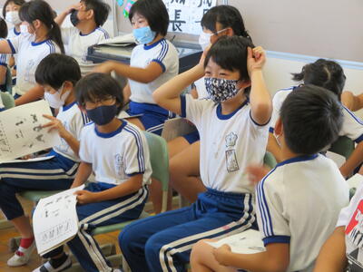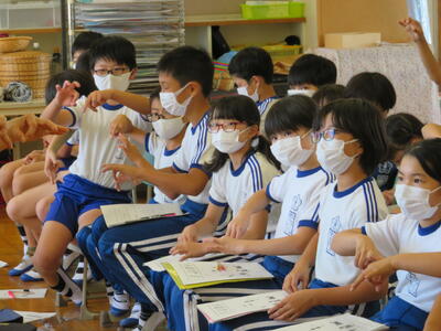 10月14日、総合学習で「福祉」について学習している4年生が、手話の学習を行いました。