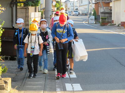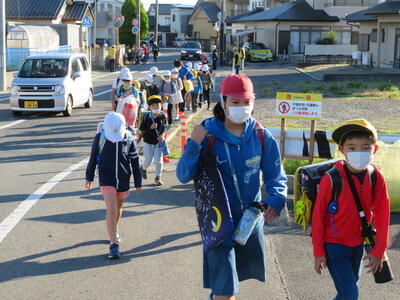 毎朝、児童たちが通学班ごとに並んで登校してきます。