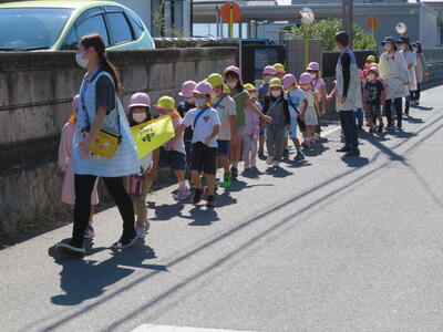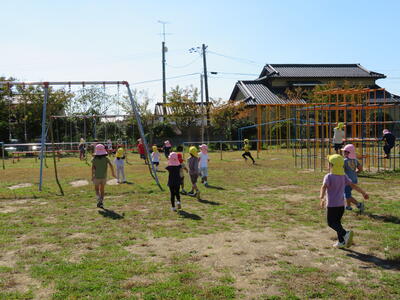 遊具でいっぱい遊んだ園児は、「ありがとうございました!」と大きな声でお礼を言って、幼稚園にもどりました。
