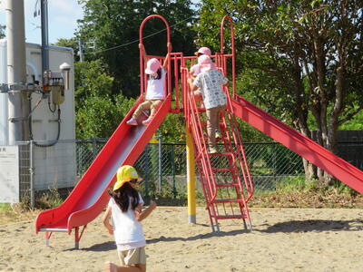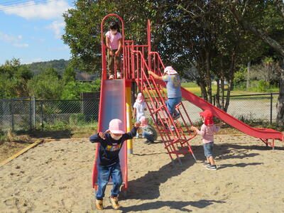 先生の話が終わると、園児たちはお目当ての遊具に向かって、まっしぐら!