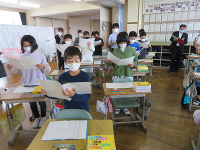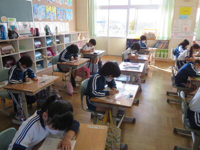 読み取りの難しい教材ですが、どの児童も一生懸命考えていました。
