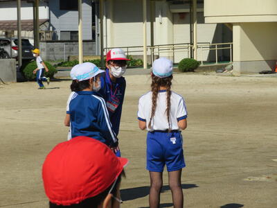 児童と話すときには、児童に合わせて目線を下げて話をする優しさを見せていました。