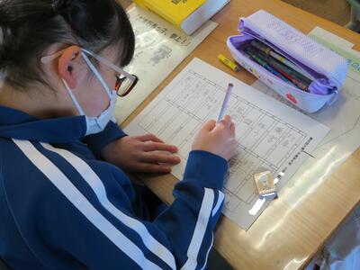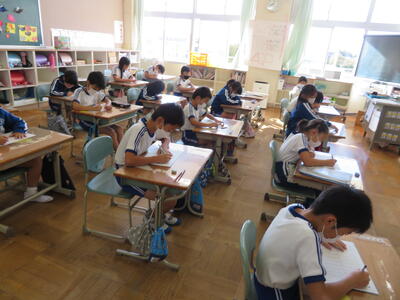20問の漢字の書き取りに挑戦しています。満点を目指してみんな真剣に取り組んでいます。