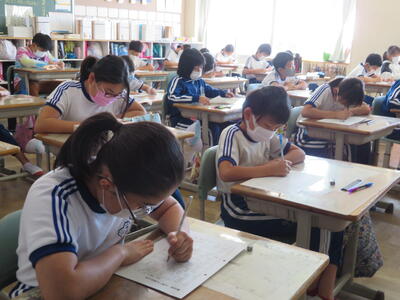 漢字大会と計算大会を交互に行い、最後には優秀な成績を収めた児童を表彰する予定です。