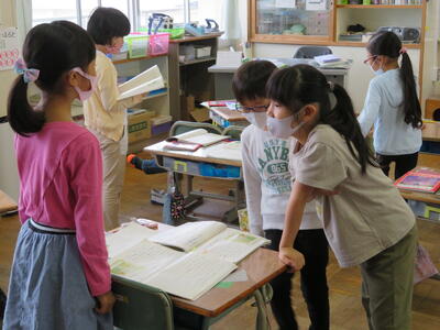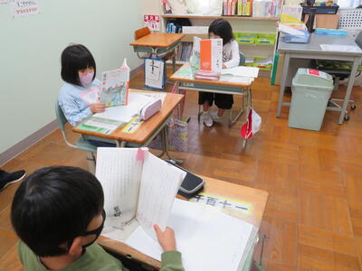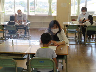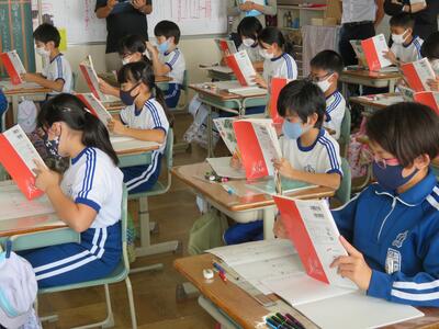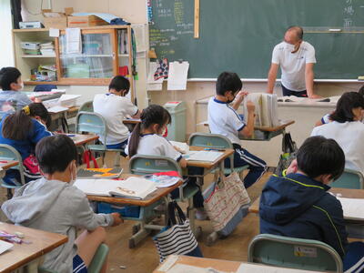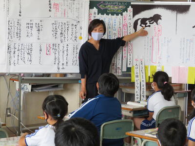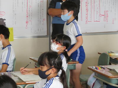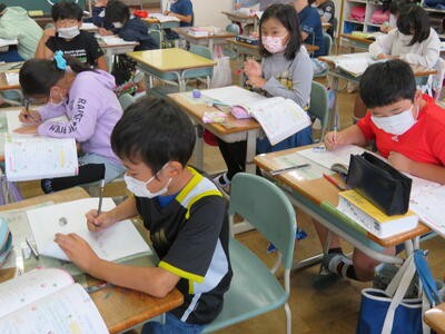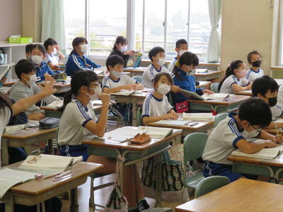 5年生は国語の読み取りの学習。先生のお話をしっかり聞いていました。