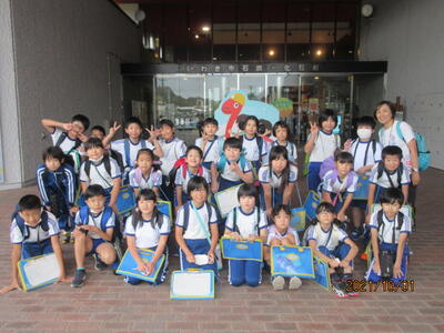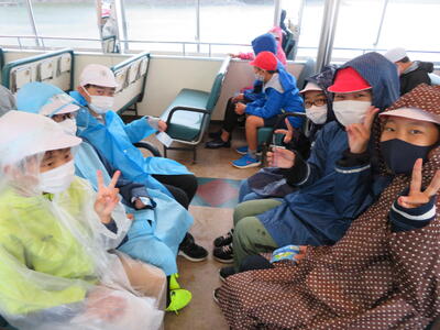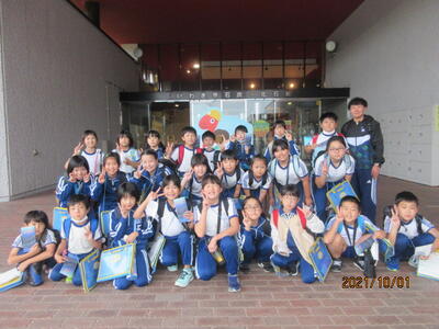 10月1日、台風が迫る中、1~5年生が市内に見学学習に出かけました。