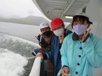 次の見学地は、檜原湖の観光船遊覧でした。
