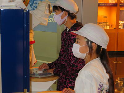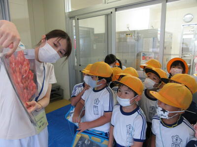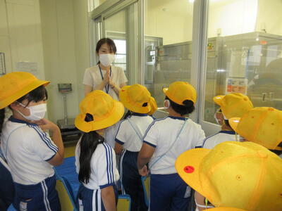 先日は1年生が見学学習で訪問しましたが、共同調理場が学校の近くにあるため、一ヶ月に1回の割合で、児童たちの給食の様子を見ながら、給食指導をしていただいています。