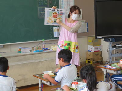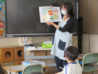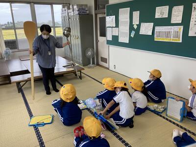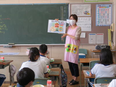 10月7日 四倉給食共同調理場より栄養教諭と栄養技師の先生をお迎えして、給食指導をしていただきました。