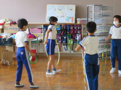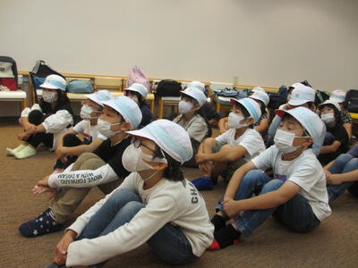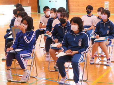 1年生は体育館で学習していました。(自主規制!)
