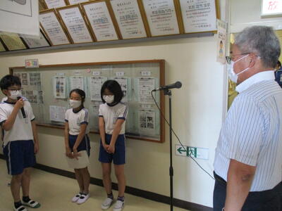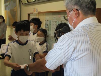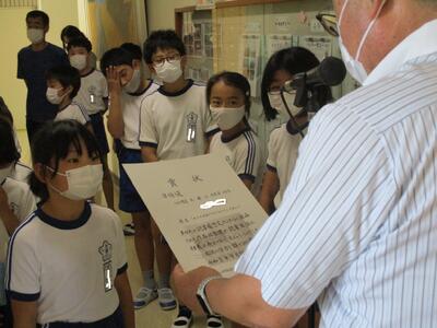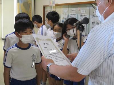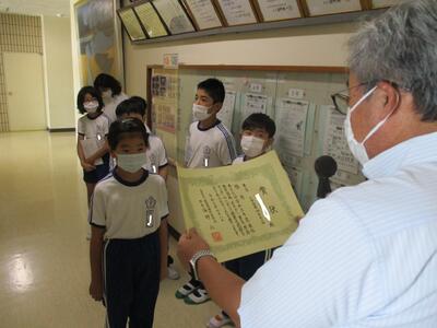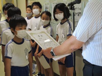 その中で、いわき地区読書感想文コンクール・いわき地区理科自由研究展において優秀な成績をおさめた児童に表彰状が渡されました。
