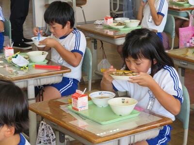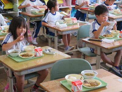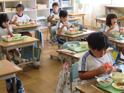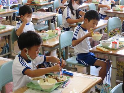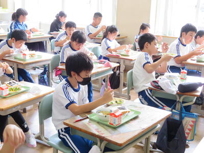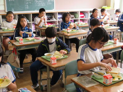 学校ではいつもマスクをしていますが、給食を食べるときにはマスクを外して食べるので、児童たちの表情が一番わかる貴重な時間です。