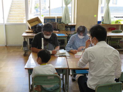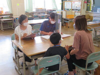 その後は、簡単なテストとお家の人といっしょに面接を行いました。
