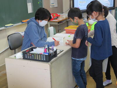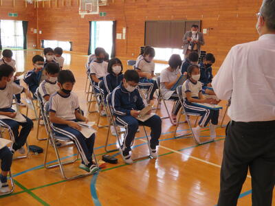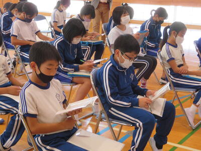 どの児童も、先生の話をしっかり聞いてメモをしていました。