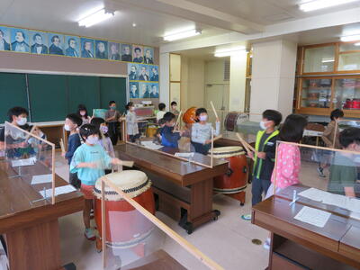 音楽室からは太鼓の音が聞こえてきました。(これも自主規制!)