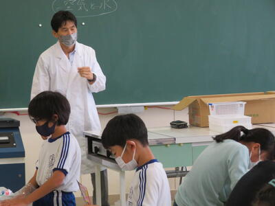 4-2は教頭先生に理科を教わっていました。これは珍しい教頭先生の白衣姿! ドクター教頭!