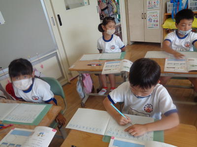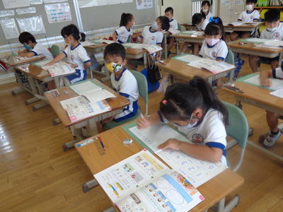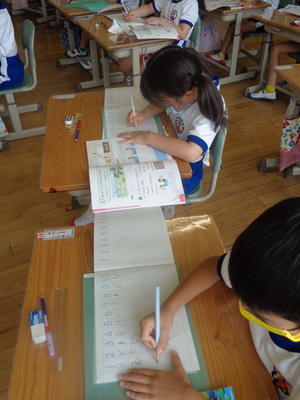まずは、ノート指導から…。(1年:算数)