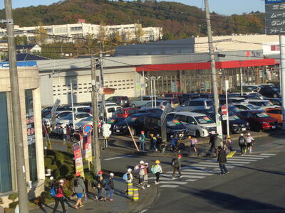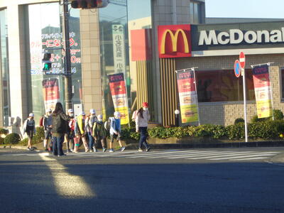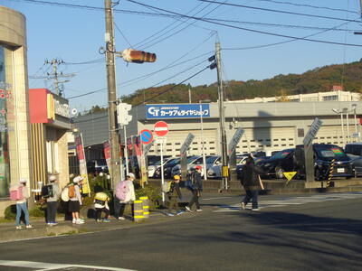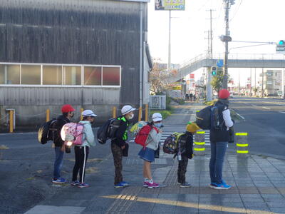 2021年11月15日 08時06分今朝は、東一岡方面とマクドナルド交差点で登校の様子を見守りました。月曜日ということで、運動着等の荷物を持っての登校でしたが、あいさつと一列歩行に気をつけて元気に登校することができました。明日は、校内持久走記録会が予定されています。本日全員に「参加承諾書」を配付しますので、今日から明日の朝にかけての健康観察を十分に行い絶好のコンディションで迎えられるようよろしくお願いします。