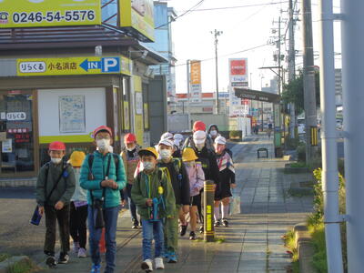 今朝は、東一岡方面とマクドナルド交差点で登校の様子を見守りました。月曜日ということで、運動着等の荷物を持っての登校でしたが、あいさつと一列歩行に気をつけて元気に登校することができました。明日は、校内持久走記録会が予定されています。本日全員に「参加承諾書」を配付しますので、今日から明日の朝にかけての健康観察を十分に行い絶好のコンディションで迎えられるようよろしくお願いします。