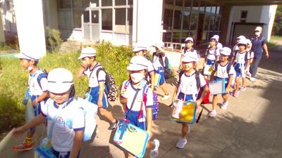 2023年9月11日 10時35分2年生の見学学習、8時15分頃、元気に出発しました。
