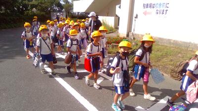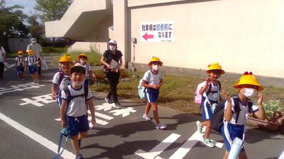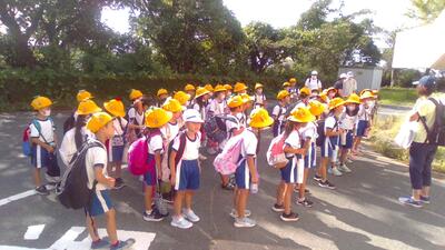 2023年9月11日 11時07分1年生も見学学習に、8時20分頃、元気に出発しました。