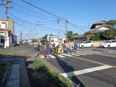 今朝は、三岡方面の登校の様子を見守りました。通学路は台風の被害もなく、通常どおり安全に登校できました。