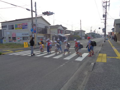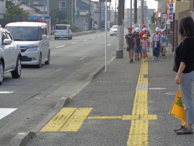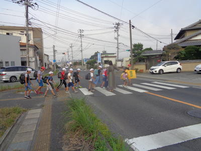 今朝は、三岡(南君ケ塚交差点)方面の登校の様子を見守りました。集合場所には、家の人も見送りに出てくれるなど温かさを感じました。
