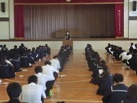 校長先生のお話、保健室の先生から健康管理についてのお話、生徒指導担当の先生から臨時休業中の生活についてのお話がありました。