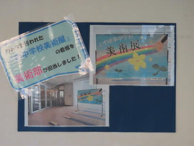 1月20日(土)から、いわき産業創造館(ラトブ)において開催された、いわき市中学校美術展の入場口看板を、本校の美術部生徒が製作し、美術展を陰ながら盛り上げました。