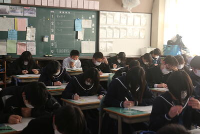 2024年2月16日 11時17分2月15日(木)、16日(金)の両日、1・2年生は本年度最後の定期テスト「学年末テスト」に臨んでいます。