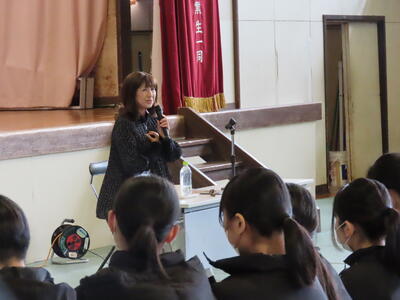 2024年2月29日 19時37分2学年で「いのちの教育講演会」が開かれ、志賀よしえさんを講師に迎えて、いのちの大切さについて学びました。