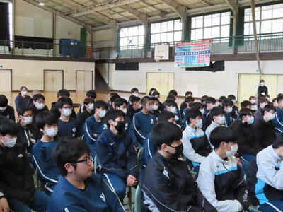 講師の先生のこれまでの経験を通して、“今を生きる大切さ”“苦しいことを乗り越えたあとの喜び”などについて語られました。特に、13年前の東日本大震災において家族を失ったときの悲しみに触れ、当時はどうしようもない感情に打ちのめされそうになった経験は、生徒たちの心に大きく刻まれました。