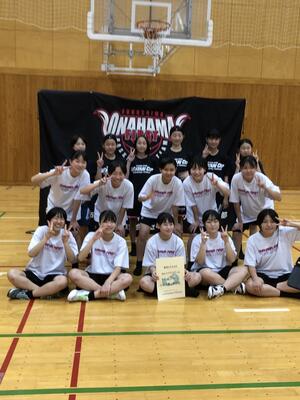 昨年に続く県大会出場を目指して、準決勝に挑みました。序盤からなかなか思うような展開にはならず、苦戦を強いられましたが、前半戦を5点差のビハインドで終えました。後半、1点差まで追い上げ反撃ムードが高まりましたが、最後は「41-51」で惜敗し、3位となりました。県大会出場は果たせませんでしたが、最後までゴールを狙い、逆転を信じてコートを走りきりました。男子チームの応援も大きな力となりました。