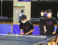 2日目の団体戦は、予選リーグを行い、男子は勝敗数で3チームが並ぶ中、惜しくもゲーム数でリーグ4位となり決勝リーグへの進出することはできませんでした。女子は、リーグ1位で通過し、12日(水)の決勝リーグに駒を進めました。