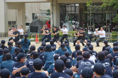 生徒会長さんから激励の言葉、先生方からのエール(「ハカ」ヴァージョン)、応援団によるエールが行われました。