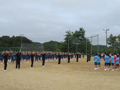 20日(月)、延期になっていた中体連出陣式(選手壮行会)が行われました。