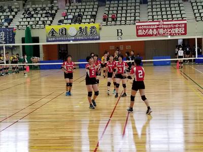 小名浜一中女子バレー部も予選リーグにのぞみ、2勝で明日の決勝トーナメントに進出しました。