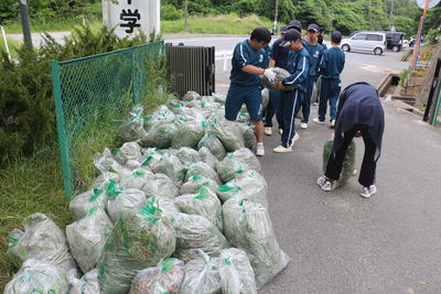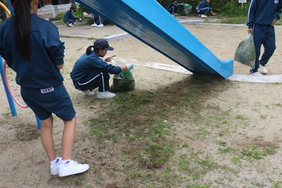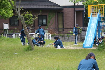 写真は、2学年が学区内の公園の除草作業を行った様子です。