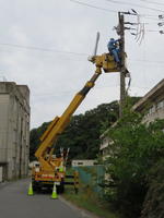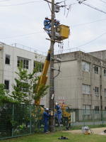 新しいキュービクルを設置し、配線を行います。電柱でも作業を行います。かなり大がかりな工事です。