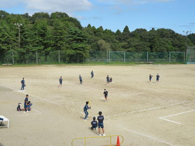 ソフトボールの授業でした。さわやかに晴れわたり、スポーツには最適の気候でした。
