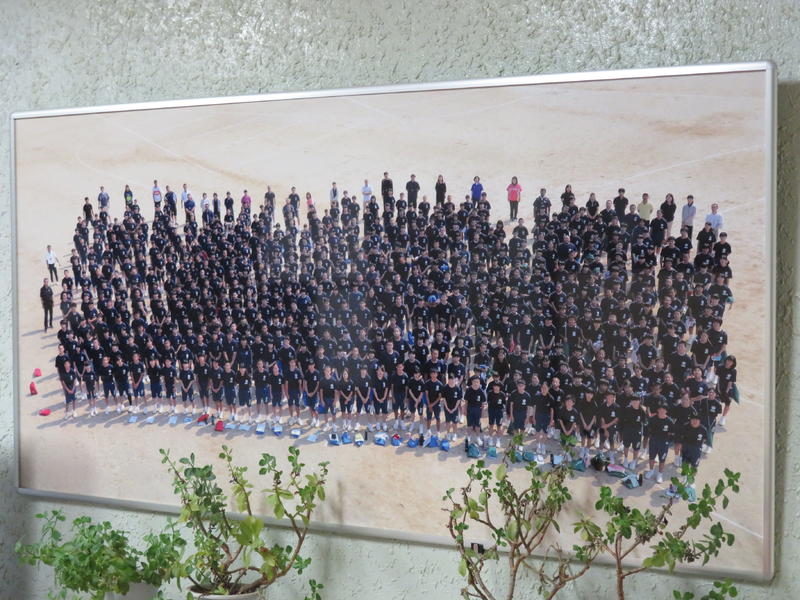 この写真に写っている生徒たちは全員卒業したため、新しいものに替えることになり、21日に撮影を行いました。