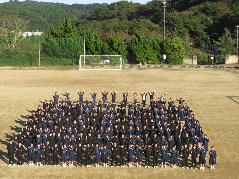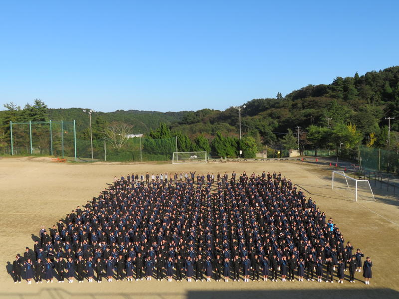 小名浜一中の玄関には、全校生で撮影した写真が掲示してあります。