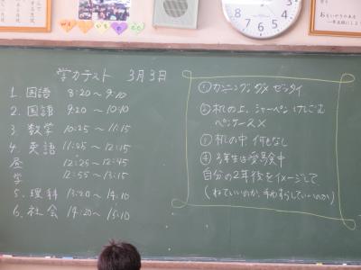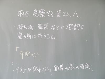 2021年3月3日 19時44分3日(水)、県立高校前期選抜試験が実施されました。受験した3年生の皆さん、お疲れさまでした。